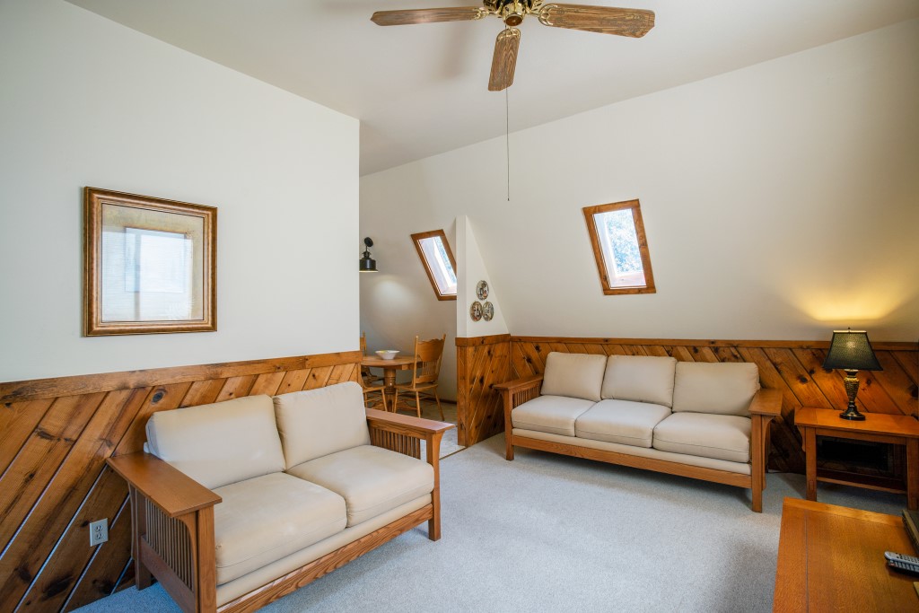 The “Loft” has 1 Bedroom with a Queen bed, 1 Bathroom. Sleeps 2 comfortably, 4 maximum