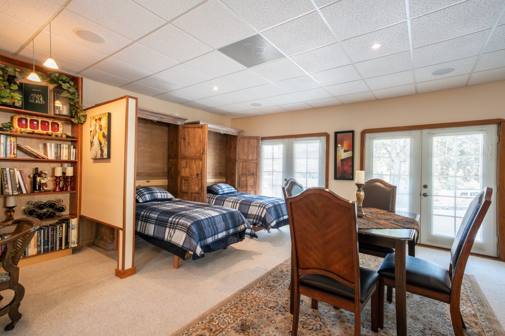Sleeps 2 comfortably, 6 maximum, Large Restroom, Built in Bar, Gift shop, Book store, Free use of toys for the kids, Mobile PA system. 65” flat screen HD TV, WIFI, VCR & DVD player. High-speed wireless internet is also provided. Airbed is available for additional guests’ sleeping space. A perfect location for a Family Retreat; WIFI for the kids, peace & serenity for the adults. Far enough away from the sounds of town, yet still close enough to be convenient. Located minutes from the freeway for easy access. Lounge can also be a perfect spot for conferences or a corporate meeting space or a rehearsal dinner. The Lounge can hold 24 guests comfortably. All this in a 3 acre gated property. Great for Gatherings, Corporate Retreats, Family Reunions & Workshops